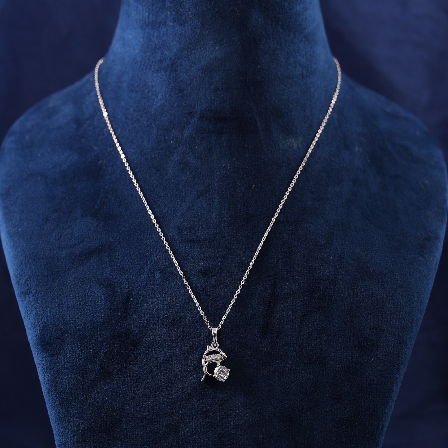 Elegant 92.5 silver dolphin pendant with link chain, symbolizing freedom and charm – perfect for daily wear or gifting.