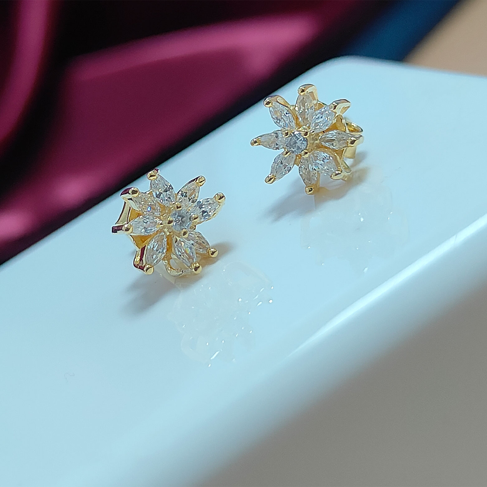 Elegant and lightweight gold plated ear studs crafted in 925 sterling silver. Perfect for daily wear, office looks, or gifting. Hypoallergenic, tarnish-resistant, and comfortable for sensitive ears.